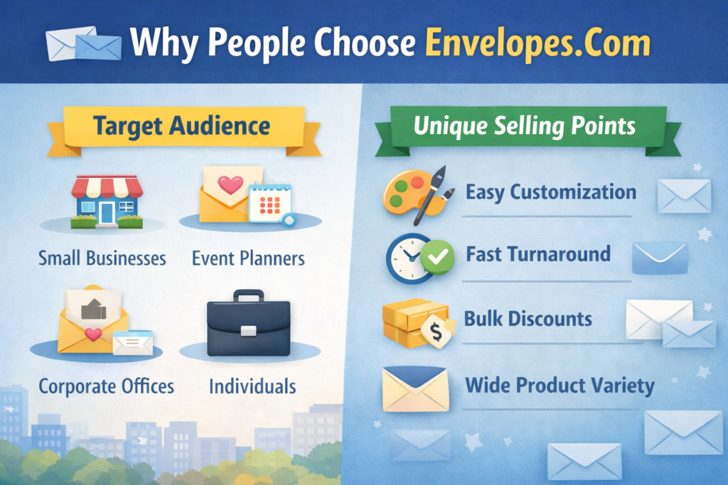 Who actually uses Envelopes.com? The answer is broader than you might expect. Small businesses, corporate offices, event planners, and even individuals preparing wedding invitations all find value here. If you’ve ever needed something more than a plain white envelope, this platform likely has what you’re looking for.