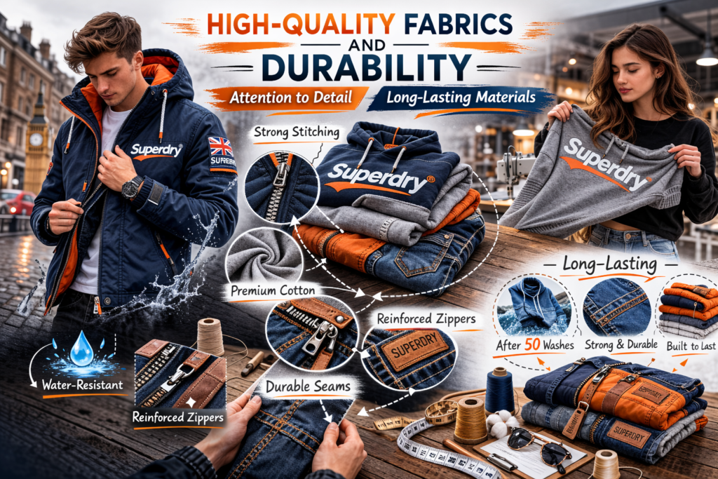 Superdry focuses heavily on stitching, zippers, and finishing. Even the inner lining of their jackets shows craftsmanship.